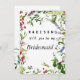 Kommer du att bli mitt bridesaid bröllop-kort på en rosa, grönt, lavender och mint vattenfärgsfärgad, handtryckt perfekt för bröllopsinbjudan till blommigten på sommaren, och botaniskt temat bröllop-chic?