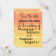Sommarens Rustic Avslappnad Gult Peach Lycklig Mellow Mönster Spara datum med bröllop-detaljkort. Berätta för alla att du är redo att fira din avslappnad sommarens ungdom, förnyelse av älvar eller andra tillfälle med den här Lycklig-gult gulten och den rosiga persikodesignen mönster. Denna utformning fungerar för alla åldrar och gender och är underbar för vår och sommar, men kan användas hela året. Denna utformning fungerar för alla åldrar och gender och är underbar för vår och sommar, men kan användas hela året. Lycklig Mellow färg är en gult med en rosenspetsig orange som är mer livskraftig och fullt än persikofuzettrenden. Det är ett underbart färg-program för när du vill vara nära trenden för 2024 färg på året, men du vill inte se precis ut som alla andra. Det här färg-systemet skapades långt före årsannonsen färg, så man kan alltid säga till folk att du låg före kurvan, oavsett när din händelse äger rum. Utformningen skapades från ett originalfoto som togs av designern av ett solnedgång i San Diego i Kalifornien, och därefter digitalt texturerat till ge det som nästan målat utseende. Designbeskrivning: Utformningen består av fyra delar. Den översta delen är en rosenpersika färg, den andra delen går från färg till en medelstor gult och de två grund-sektionerna är av medelstor gult. Avsnitten är uppdelade efter grovt linjer som är lättare än det huvudsakliga färg. Hela mönstret har fläckar som gör att det ser illa ut, som om färg användes oförsiktigt och ofullständigt. Samma underliggande färg-design på båda sidor. Textbeskrivning: Textmallen "Spara datumet för bröllop i ett skript i avslappnaden över det övre, rosa området. Under detta gifta sig mallarna för namn från de två personerna, i ett stort, fetstilt, rundat teckensnitt. Öga dras till namn. Under det, i samma mindre skriptteckensnitt, en mall för datumet. Bakgrundstexten kopierar samma första namn-mallar från framsidan och placerar dem i det övre, rosa persiennavsnittet. Under det kopieras datumet på framsidan i en mycket större version av samma skriptteckensnitt i avsnittet som övergår från persika till gult. Under det finns mallar med mindre fet stil för din webbplats bröllop, stad/stat och bröllop. På grund finns en mall i ett litet skriptteckensnitt för taggen, eller ändra teckensnitt och använda för hashtaggen, eller lämna tomt.