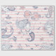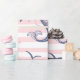 Den lilla flickans sjöjungfru under havet tog upp födelsedagsfesten och slog papper. Blå och vit med rosa rand.