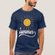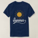 Solsken, Sommarens kalligrafi stil formger manar ljusblå T-shirt. Den här sommardesignen är perfekt för din semester på stranden. Du kan redigera den här designen om du vill ändra färg i någon av designens inslag.