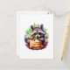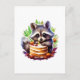 Sommar vår tvättbjörn med en 1-års födelsedagstårt vykort