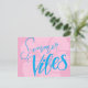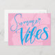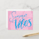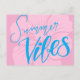 Blått sommarvykort med handtaget "Sommarvibes" i pulverblått på mjuk rosa med en feg hibiscus-blomma. Perfekt för att skicka heliga hälsning, semestersedlar eller tropiska vibes.