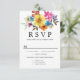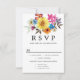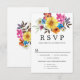 Rustik sommarblomning dekorerar överkanten av den här söt blommigtens OSA kort. Det finns en sommarbukett på baksidan. Båda har en ljusstark solrosa i gulten som omges av blåa, rosa, vita och brända vilda blommor i orange. Detta är en del av sommarens Wildblomsamling som innehåller många samordnande element som du kan använda att skapa en elegant och ett unikt bröllop-kontor i paket.