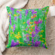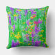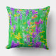 Dekorativ kudde i en skiss av pastellkrita mönster av utspridda sommarblommor i fält av ängsgräs av grönt
