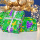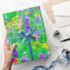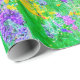 Omslagning pappert i en pastellkritskiss mönster av utspridda sommarblommor i fält av ängsgräs av grönt