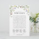 Modern, elegant-möhippa, "Ord Search", med vattenfärgade sommarblommor som sötärtor, lupiner, ögonblicksbilder och mer, i klara, summerade nyanser av rosa, lilak, lavender, , blues och delikata botaniska löv av grönt. Anpassa din möhippa namn i svart, accentuerad med vacker, modern kalligrafi med handbokstäver. En del av en samordnad svit. Visa sviten här: https://www.zazzle.com/elegant_summer_wildflower_floral_bridal_shower_invitation-256486599269422892 Kontakta designern för matchande produkter. Copyright Anastasia Surridge for Elegant Inbjudan, alla höger reserverade sig.