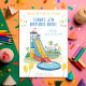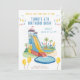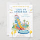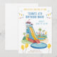 Gör en stänk med denna roliga och färgglada vattenrutschbana födelsedagsinbjudan! Perfekt för sommarfester, denna design har en jätte rutschbana, palmer och en sval bassäng - allt barn älskar. Idealisk för utomhus födelsedagar, vattenparker eller bakgårdssplatter-fester. Anpassa enkelt inbjudan med ditt barns namn, ålder, datum, tid och RSVP-information på några minuter. Bra för pojkar eller flickor som älskar vattenkul!