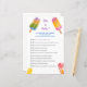 Sommarpopsicle Baby Shower Game over eller under det här babyvisaren-spelkortet kompletterar min söta "Popsicle Ice Cream-sommarfest" Baby Shower-samling. Du hittar inbjudningar, Infogar, Undertecknar och matchande objekt i min Zazzle-butik.