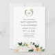 Modern botanisk handmålad bröllopsinbjudan med vattenfärg grund gräns av blommor, eukalyptus löv, orange och löv i en färsk palett med vit, elfenbensfärgad orange, grönt och rosa som anger dina namn och bröllop detaljer. Dina monogram eller Initialer är uppbyggda av ett hjärtformade ram av löv, löv och vår blommor. Den moderna typbehandling som används för din bröllop-information ökar designens moderna klassiska känsla. Baksidan av inbjudan har en matchande intensiv grönt. Tecknet finns i ett klassiskt grått färg. Det här är en del av en Sent Sommarsamling. Besök vår butik. Vi kan byta färg, typsnitt och annat för att göra din design unik personlig. Kontakta oss via butiken eller skrivan på citronelladesign@gmail.com om du behöver hjälp eller anpassningsbar.