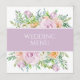 Sommarblommor Blommigt Bröllopsningsmeny designad i en vattenfärgad bukett med mjuka nyanser av lila, vitt, blått och grönt. Den främre texten innehåller: Bröllop-menyn. Den omvända texten innehåller: Dina Appetizer-, Entre- och Dessert Manu-val. Om du vill anpassa dig infogar du dina menyval i vår enkla mall och ersätter exempeltexten. Se till att du hittar matchningskort och tillbehör i hela sommarblommorna Blommigt Bröllop Stationery Collection.