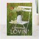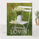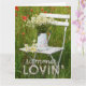 Välgörande och redigerbar hälsningskortdesign med vackra sommarmotiv. En vit trästol i ett sommarfält med en vas med vita kamomill. Poppies runt stolen. Njut! © Photography by OutART 2017