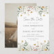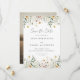 Denna design har en akvarellkant med vilda blommor i nyanser av guld, rött, blått och grönt. Perfekt för vår- och sommarbröllop.