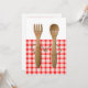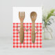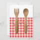 Kreativa par bröllopsfest inbjudningar med gaffel och sked brud och brudgum. Perfekt för en utomhus grillfest, picknick eller BBQ-evenemang.
