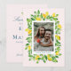 Denna svit med bröllopsinbjudningar är vackert designad med akvarellillustrationer av färska citroner och blad. De blandade färgerna i akvarellen skapar en lugn och elegant bakgrund för designsviten. Teckensnitten som används för texten är snygga och raffinerade och ger en touch av sofistikation till designen.