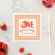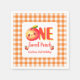 Sprid glädje med dessa bedårande första födelsedagsservetter med texten "One Sweet Peach". Designen visar en glad kawaii-persikafigur omgiven av mjuka akvarellblommor och fet, livfull typografi. En söt detalj för en sommarbetonad dessertbord med tema av fruktträdgård.