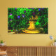 Stängningsyta av en trädgård vas eller en fullt av färska persikoblommor. Kontrast för gult, sten och grönt löv. Kylskuggan på hettens sommardag. Sommarens skönhet och stil. Lycklig: sommarsemester, lycka och välstånd för er alla.