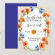 En delikat vattenfärgsmålning som innehåller vibrerande orange och mjuka blå vilda blommor. Den arrangemanga blommigten visar upp grova penseldrag, blandar varma toner och coolor för en harmonisk, naturinspirerad sammansättning. Perfekt för botaniskt konst älskare och Bröllop.