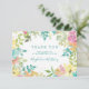Ett vackert och elegant tack för att du fick designat kort, särskilt för en 40-årsdag. Den har en modern blommigt ram av turkosblått, rosa och gula blommor som är inkapslad i skulderbladsliknande grönt. Fyra linjer tillhandahålls för ett skräddarsytt tack till dig och födelsedagstvinnens namn.