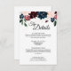 Denna ”Summer Celebration” -bilaga med brölljsdetaljer inger en traditionell och elegant blomsteratmosfär för ett trädgårdsbröllop. Med rosa, kungblå och cabernet burgunderfärgade blommor, de rika röda och marinblå färgerna i kombination med guldglitter kompletterar formella vår-, sommar- och höstteman och skapar en klassisk och mångsidig lyxig äktenskapsfirande upplevelse. Lägg till fler detaljer på baksidan med ytterligare information till era gäster.
