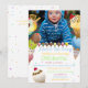 En söt och färglös glasgräddbild med en skarp glasskiva i sockerkoner som är spridda runt kant i inbjudan och regnbågskonkocker som bildar ett gräns kring ditt vackra Barn-foto. Det finns söta skriptmallar för personligens ordalydelse och baksidan har utrymme för extra-detaljer om det behövs.
