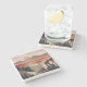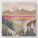 Ett abstrakt med ett unikt färg och struktur som uppvisar ett naturområde med ett stigning sol och två gäss i skuggor av orange, beige, brun och rosa.