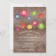 Rolig jubileumsfestinbjudan med färgglada sommarglödande lyktor på en rustik trähylla med en matchande baksida för en extra speciell touch. Perfekt barbecue trädgård jubileum inbjudan för alla jubileer, 25-årsjubileum, 30-års bröllopsjubileum, 40-årsjubileum, 50-årsjubileum, 10-årsjubileum, 5-årsjubileum, 60-årsjubileum eller 75-årsjubileum.