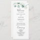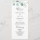 Denna sommar är bröllopsprogrammet med eukalyptus foliage i grönt en perfekt för ett modernt bröllop. Utformningen har vackra, handmålade vattenfärgade löv av grönten eukalyptus, inspirerande naturcharm.