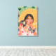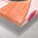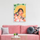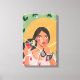 Flickan med stor gult sommarhatt sjunger grönt blommigt tapet bakom henne och en cocktail och solglasögon i handen med en rosa blommigt-skjorta. Originalteckningar av Caroline Bonne Müller.