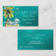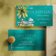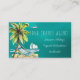 Vintage retro stil handflatan träd, sol säng, segelbåtar och strandscen för fåglarsommar på en vatten liknande blå tealbakgrund skapar ett djärvt färglöst helgdagar för resebyråer. — Fyll i dina uppgifter på framsidan och baksidan!