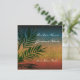 Elegant Rik färgad bröllopsinbjudan, underbar för strandbröllop, destinationsbröllop och tropiska öresort bröllop. Solblått, gult och rött, med mörk grönt handflatan träd grenar. Enkel att anpassa med din online för bröllop-information.