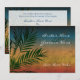 Elegant Rik färgad bröllopsinbjudan, underbar för strandbröllop, destinationsbröllop och tropiska öresort bröllop. Solblått, gult och rött, med mörk grönt handflatan träd grenar. Enkel att anpassa med din online för bröllop-information.