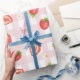 Sommarjordgubbens Daisy Blommigt Rosa Gingham Part Presentpapper