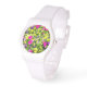 De lysande jeweltonade sommarblommorna dekorerar detta vibrerande klocka.