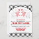 Krabbabölden/bakar inbjudan med en ginghammönsterbakgrund, fångar krabbor, samlar musslor, bubblar, sjöstjärnan och sjögräs. Lätt att skräddarsy med din egna text. Original- illustration vid pj_design. Behaga kontrollen mitt lager för mer något liknande detta.