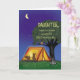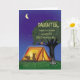 Om du är tittar för ett sött kort som du vill skicka till ditt barn, barnbarn eller vän till sommarlägret, ta en titt på det här. Den här söta, visuella designen visar en ekorre och en kanin i tält. Man kan känna igen deras silhuett, eftersom de leker med sina blixtljus. Tält ligger under ett träd med uggla. Du ser en campingeld som nästan är utdödat. Skriva det här kortet till ett barn i sommarlägret