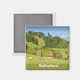 Sommarlandskapet i Schweiz magnet An idyllic souvenir magnet of a sommarlandskap med kor som betar på en grönt betesmark i Schweiz. Bild av celeste@khoncepts.com