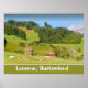 Sommarlandskapet i Schweiz poster en idyllisk poster av ett sommarlandskap där kor betar på en grönt betesmark i Schweiz. Bild av celeste@khoncepts.com