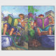Sommarläsning Konst av Traci Van Wagoner visar en pojke och en flicka som sitter i en urban bakgård på en varm sommardag med fötterna i en sval balja, dricker lemonad och läser böcker. En katt och en hund ligger hoprullade vid deras fötter på trädäcket. Perfekt för bokälskare och bibliofiler i alla åldrar.