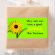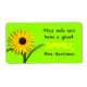 Begränsa det gröna klistermärket med en stor gult daisy-blomma och anpassningsbar-textmeddelande från en lärare till studenter. Sträck runt ett godis pub som ett sista skolår.