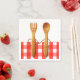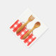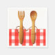 Napkins i bröllop möhippa med rolig sked och gaffelbrid och groom på rött gingham-bakgrund designad för BBQ, köks-möhippa eller bröllop-händelse.