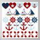 Sommarens nautiska tema Anchors Segelbåt Helms Hearts. Här är en roligt segelsedel med segelbåt, fraktens hjälmar, ankare, livskonserverare och hjärtan med stjärnor och ankare i dem. Traditionellt nautiska färg av rött, vitt och blått. "segling" "segelor" "sommar" "segelbåt" "ankare" "livräddningsredskap" "fraktaser hjul" " och fraktaser "sjö" "båtar"