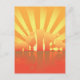 Sommarpartiets inbjudningsdesign med cocktail-glas och solnedgång