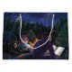 Konst för Starry natt vid det Traci Skåpbil Wagoner trycket, affischer, tillbehör och gåvasärdrag vår original- målning av två ungar och deras stort, svarthund som campar ut under stjärnaläsningen som en fantastical bok runt om ett läger avfyrar om riddare och drakar. Magin av berättelsen virvlar runt upp in i den starry himmlen för att visa en riddare och en drake i en evig nattdans av stjärnor. Tyck om ett sommarnattläger ut i bergen.