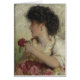 En nätt brunettflicka rymmer ut en röd ros. Jag tänker att hon är en brudtärna. Den är engelsk vid 1900s för George Hickstidigt.