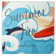 Sommar roligt, ner under. Sak design på ljusa färger, alla australiska för roligt av strand: Surfing, sunshine, handflatan träd, kangaroos, sandstrand och ett underbart stort leende!