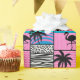 En roligt summery mönster med handflatan träd, flamingos och roligt mönster.