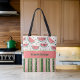 Den här färska plockade till väskan innehåller en blandning av vattenmelonskivor på översta och söt grönt och rosa prickad rand vid grund för ett sommarintryck. Ditt monogram namn förekommer i djärv, modern typografi mörk grönt i mitten på ett färg av rosa av vattenmeloni. Den här roligten är snyggt och funky med en unik, boho-chic.