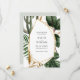 Save The Date-inbjudan har tropisk grönska med trendig gyllene geometrisk mittdel. Perfekt utseende för sommaren och moderna ekologiska bröllop.