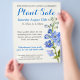Perfekt för din sommarrea för växter, växtsälj eller välgörenhetsarrangemang för växtsälj. Designen har en fint konstnärlig akvarell botanisk illustration av en sommarblommande delphinium av Sarah Trett. Baksidan av flygbladet har en affisch med målningen av den blå delphiniumen. Flygblad för växtsälj är redo för att du ska anpassa det med din egen reklameddelande. Använd ett lättvikts papper om du planerar att vika flygbladen. Unikt designad och målad i akvarell av Sarah Trett.