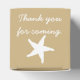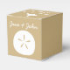 Ge är dina gäster, brudtärnor, marskalkar eller någon annan speciell behandling med det här anpassadet till att få en sandbeklädnad med en vit sand-dollar, årskal och stjärnfisk på framsidan, baksidan respektive ovansidan av lådan. På var och en av dessa sidor finns också exempeltext som du kan anpassa för din egen sommar- eller strandtematerade bröllop eller händelse. Se till att kolla upp de andra produkterna på Sand Sommarsoléerna för att skapa en verkligt samordnad syn på ditt evenemang.